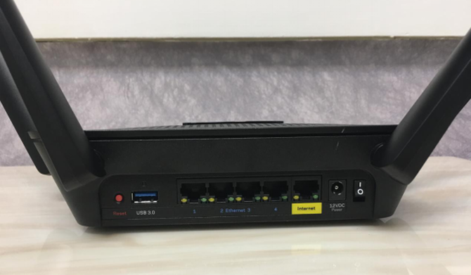 机身背面为端口设计,从左至右依次是复位按键、USB3.0端口(据官方介绍,USB接口目前暂不可用,暂不支持USB读写,后期会通过固件进行修正)、4个千兆LAN口和一个千兆WAN口、电源接口以及电源按键,整体排列非常周正。