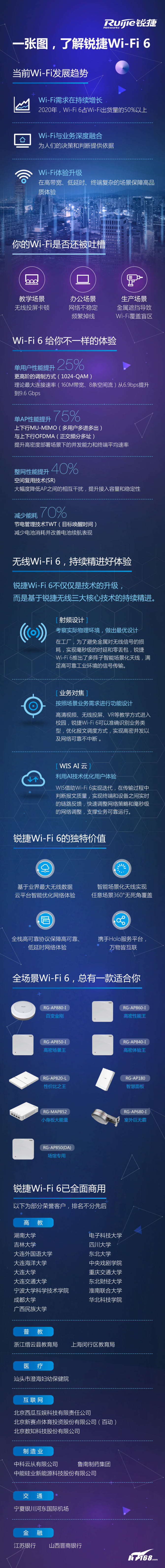 2018年是Wi-Fi 6元年,锐捷预测,到2019年,Wi-Fi 6设备会占到整个Wi-Fi(设备)出货量的20%。到2020年,Wi-Fi 6的出货占比则会超过50%。届时Wi-Fi 6的终端也会大面积普及,Wi-Fi 6和真正的业务场景融合也将面临巨大的挑战。未来可期,Wi-Fi 6的普及指日可待。