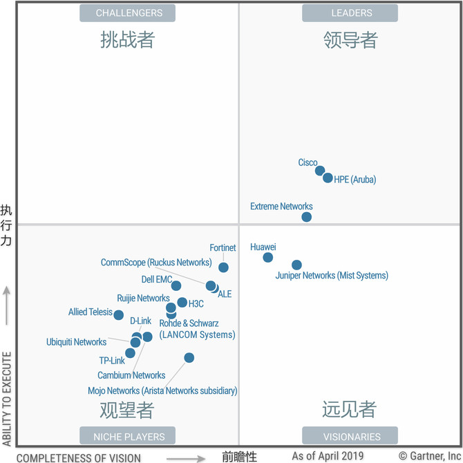 ▲ 2019年有线和无线局域网基础设施魔力象限
