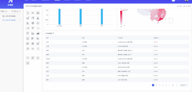 Step6. 除此之外,还可以进一步结合,通过设置联动组件来分析不同品类在不同地区的销售表现,辅助定制库存周期等策略
