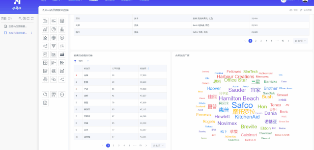 Step9. 同样我们也可以按供货率、交货期、良率、账期等对供应商进行对比分析。这里用到词云组件来按销售额来发现优秀供应商。